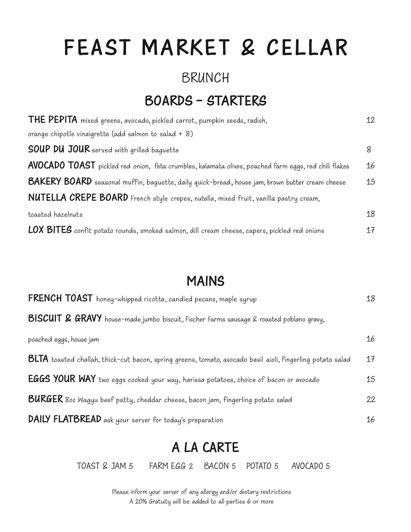 Each dish is expertly crafted, delivering an undeniable umami palette that speaks to the chef’s creativity. You can also explore an exquisite wine selection to pair with your meal. With excellent service and a cozy ambiance, Feast Market & Cellar is not just a place to eat; it’s a destination worth returning to time and again!